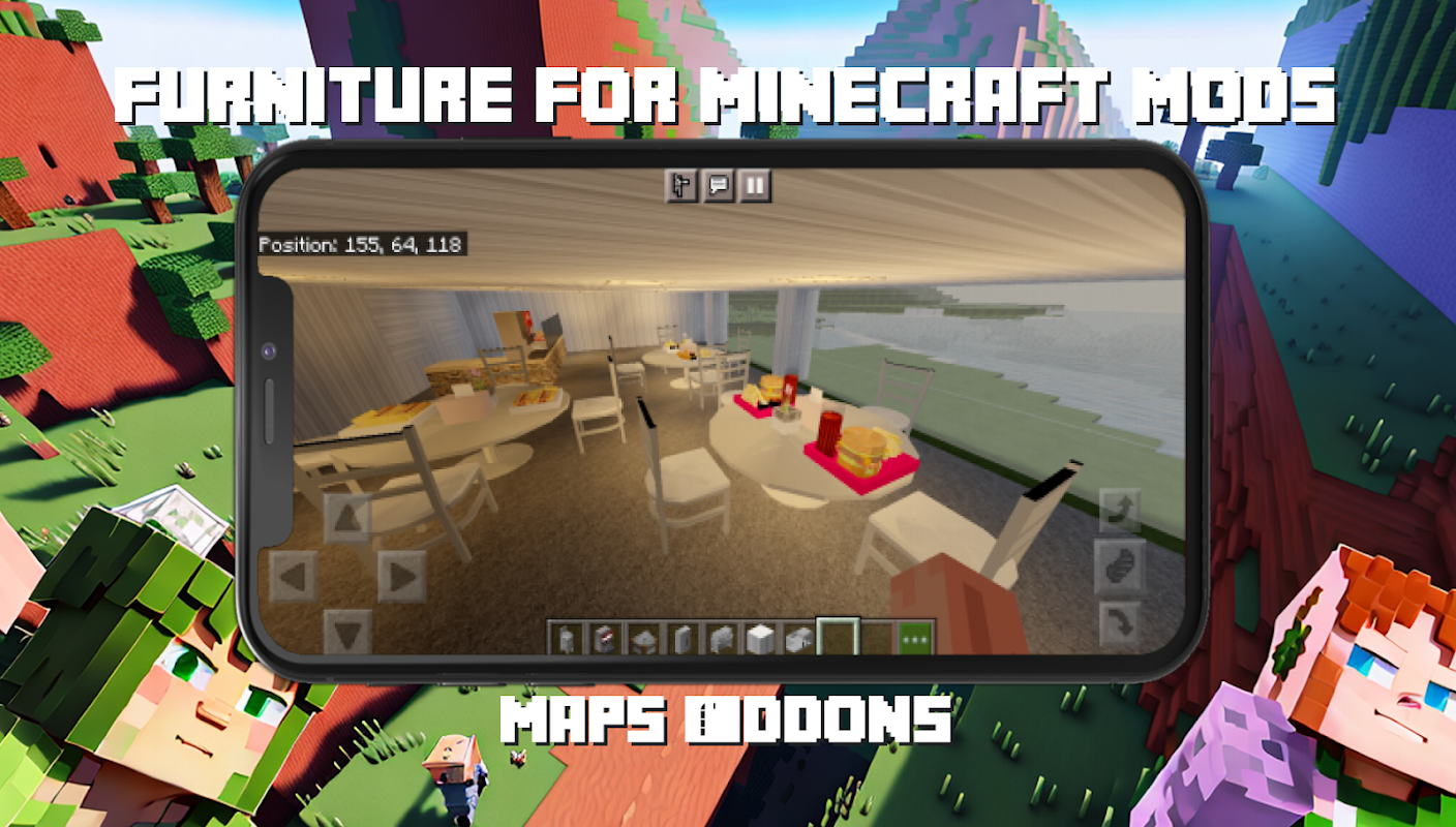 Nosso aplicativo é o caminho para tornar o seu mundo Minecraft PE ainda mais incrível. Comece a criar interiores exclusivos e transforme seus edifícios em obras de arte com 'Móveis para Minecraft'!