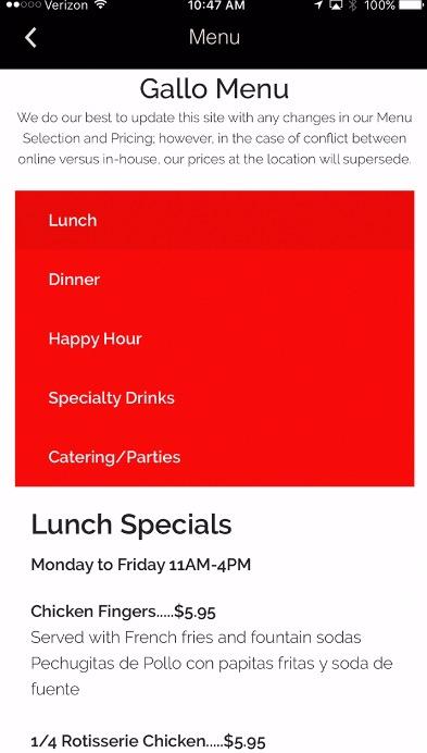 Thank you for visiting the Gallo Restaurant App. Please view our menu listings of great Colombian Authentic Cuisine, Delicious and Professionally Prepared Cocktails, as well as Our Full Catering Menu.