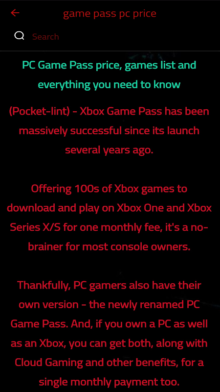 Informações sobre game pass pc APK