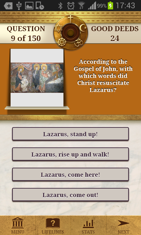 Test your knowledge and discover the easiest and funniest way of learning about the great universal religions: the doctrinal principles, sacred texts, liturgy and rites. Religion has always been and continues to be a fundamental dimension of the human being, which is essential for the interpretation of the past and the understanding of the present.