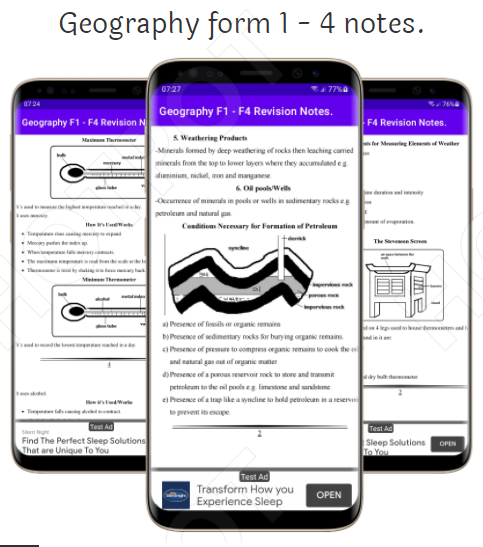 O aplicativo contém formulário 1 - formulário 4 Geografia notas padronizadas KCSE.