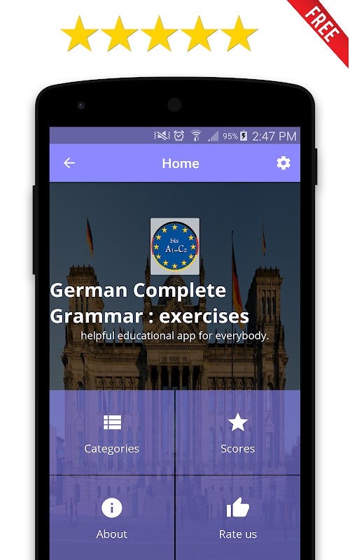 German Grammar completa: exercícios é uma aplicação com mais de 8000+ exercícios de múltipla escolha (verbos - Sentenças -Nouns).