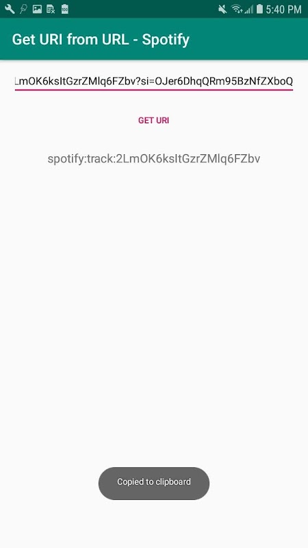 Este aplicativo recebe o URI do Spotify de um determinado URL e o armazena na área de transferência