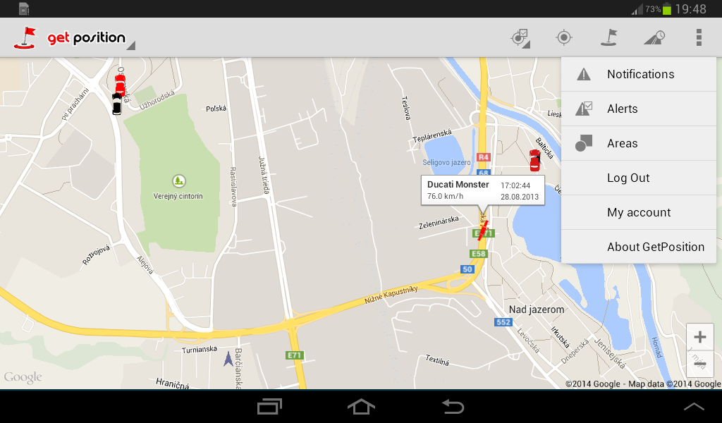 Uma vez que seu carro for roubado, você ainda pode ter a chance de encontrá-lo, olhando para o seu telefone inteligente. GetPosition pode até mesmo imediatamente informá-lo, quando seu carro se move sem a sua permissão. Isso pode acontecer também quando seu carro é rebocado pela polícia.