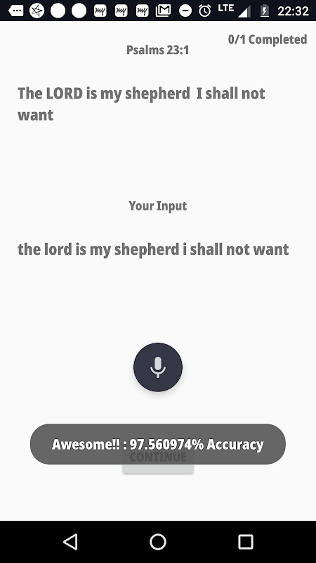 GirdThySword makes use of speech recognition in order to evaluate how well you have memorized a certain section of the Bible. A King James Bible is also integrated as a part of the app which distinguishes the verses that are memorized or added for memorizing from those that are not.