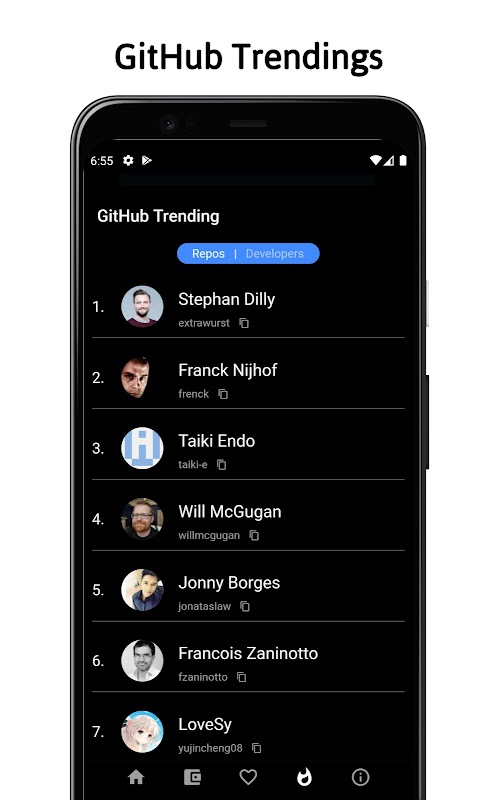 5. Obtenha as tendências do GitHub (repositórios e desenvolvedores em todo o mundo)