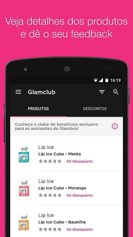É o nosso clube de vantagens. Todas as assinantes ganham glampoints quando assinam Glambox e podem trocá-los por prêmios diversos, como maquiagens e outros produtos de beleza.