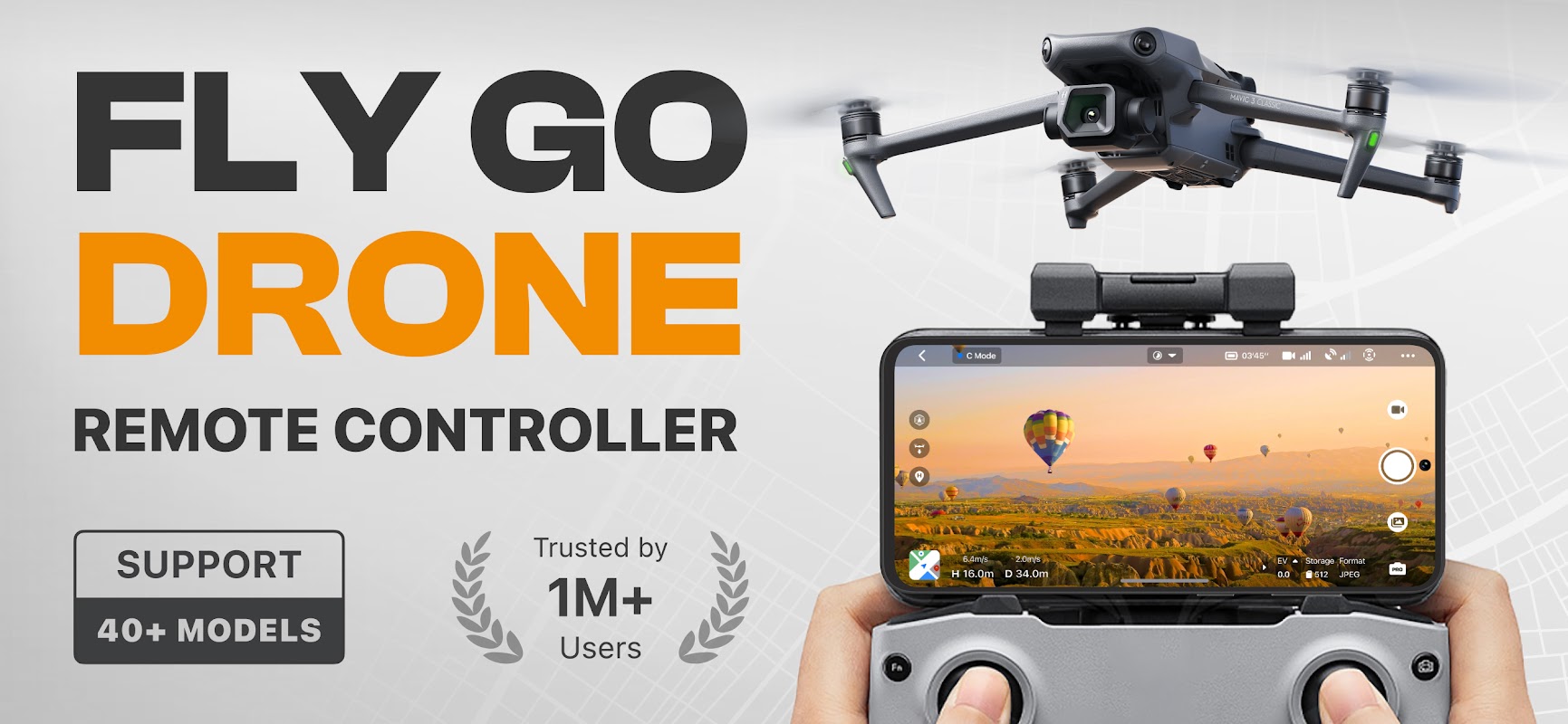 Controle seu drone facilmente com o aplicativo Fly Drone Remote Controller - o app móvel que transforma seu celular em um controle remoto para drones, compatível com uma ampla variedade de modelos de drones, flycams, UAVs e mais.