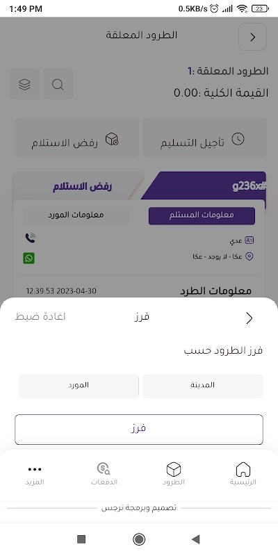 O aplicativo tem duas seções, uma para os motoristas da empresa, que oferece muitos serviços para eles, como enviar encomendas, verificar detalhes da encomenda, conversar com a empresa, receber notificações quando houver novas encomendas para entrega, rastrear encomendas rastreando QR de encomendas e outros .