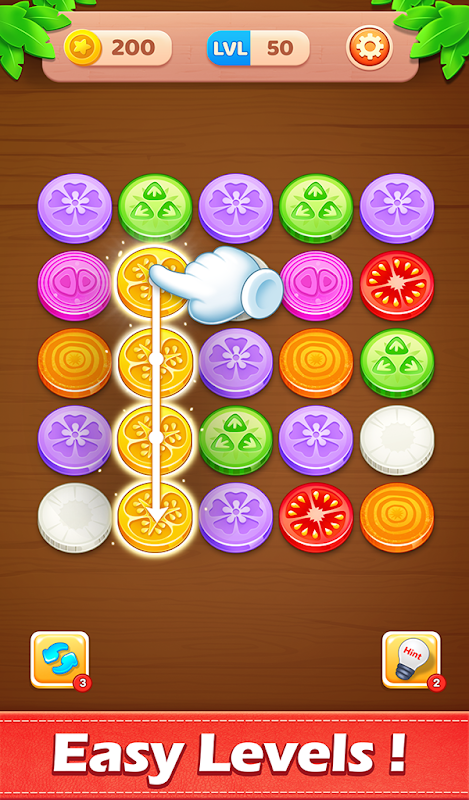 Corte os vegetais em fatias! Este jogo de quebra-cabeça lógico de combinar 3 peças ajudará você a aprimorar suas habilidades estratégicas e seu poder mental. Se você gosta do jogo de botão e tesoura, não vai parar de jogar.