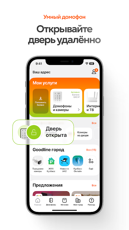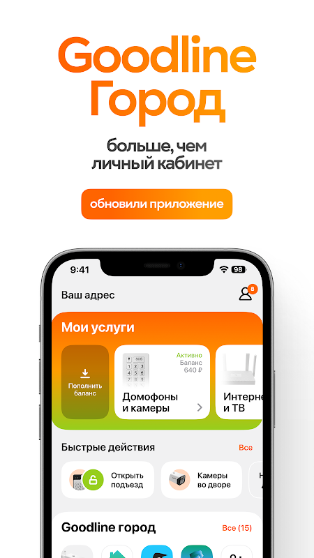 O Goodline City economiza tempo, torna sua casa mais segura e reúne todas as funções em um único aplicativo. Baixe e use todos os recursos, onde quer que esteja.