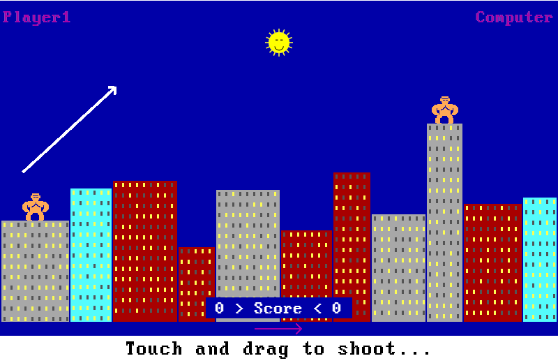 Esta versão do Gorillas preserva a aparência original e a amplia com um controle de toque casual.