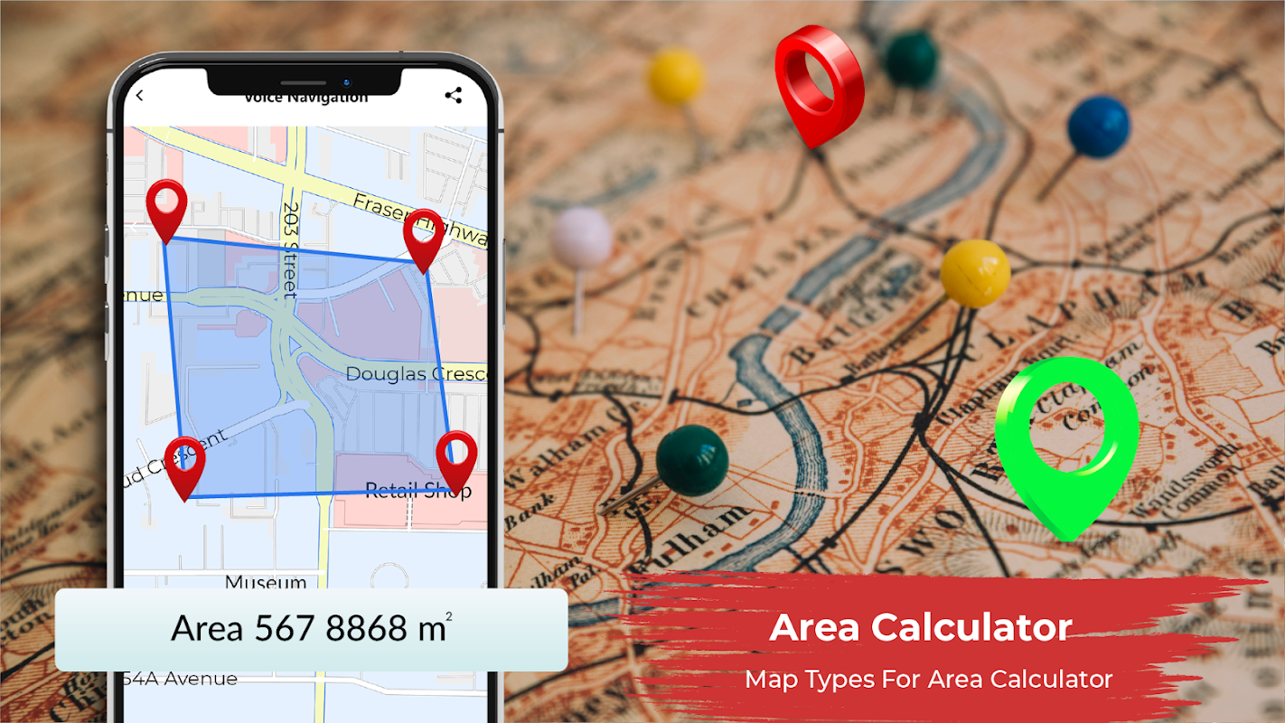 O aplicativo GPS fornece aos usuários o gerenciamento de áreas, permitindo que eles calculem áreas.