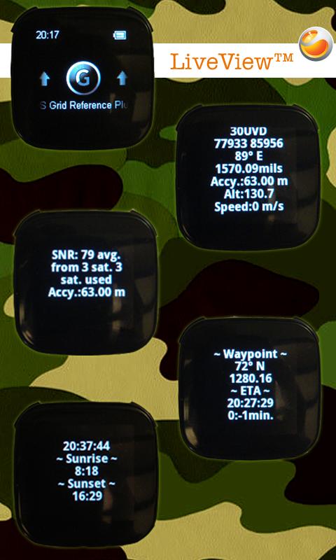 - LiveView support - display coordinate information, satellite information, ETA and time information.