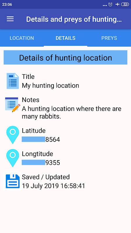6. Você pode salvar e gerenciar sua localização de caça (em tempo real usando o provedor de GPS ou usando coordenadas ou clicando no mapa). Além disso, você pode navegar para um local de caça específico.