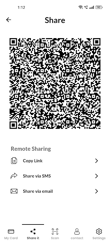 Compartilhamento de cartão de visita digital