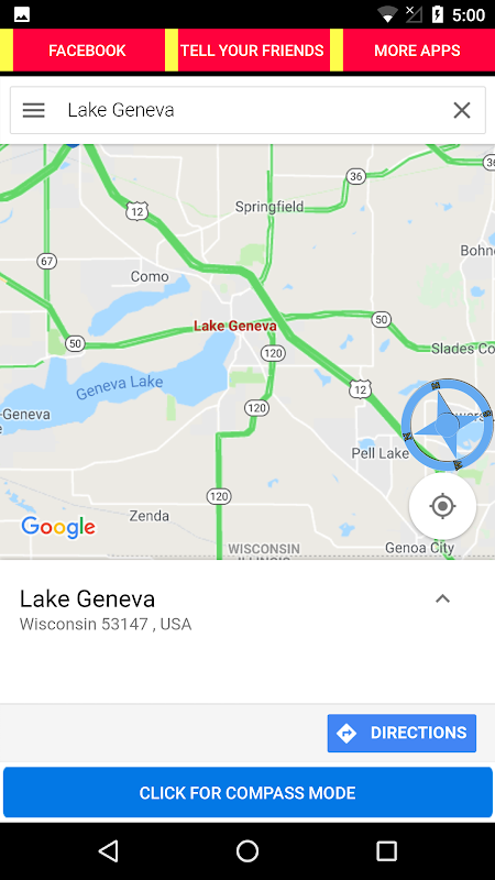 Este aplicativo é uma combinação de mapas do Google e uma bússola para mostrar suas direções para o Norte, Sul, Leste e Oeste.