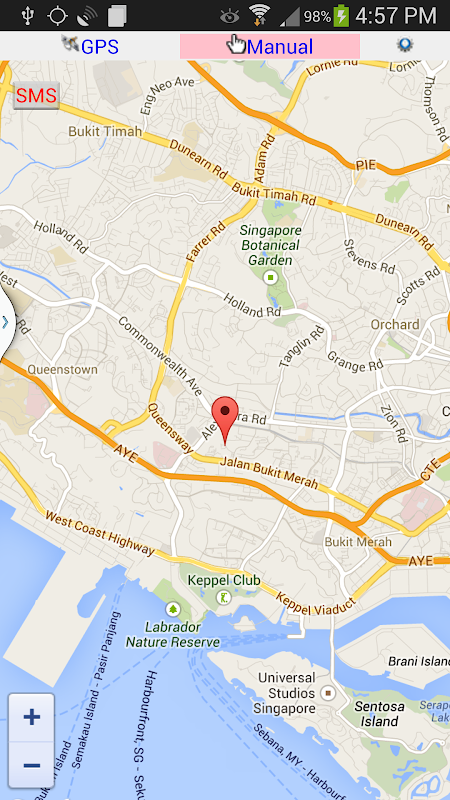 SMS enviando a sua posição latitude / longitude e google map URL.