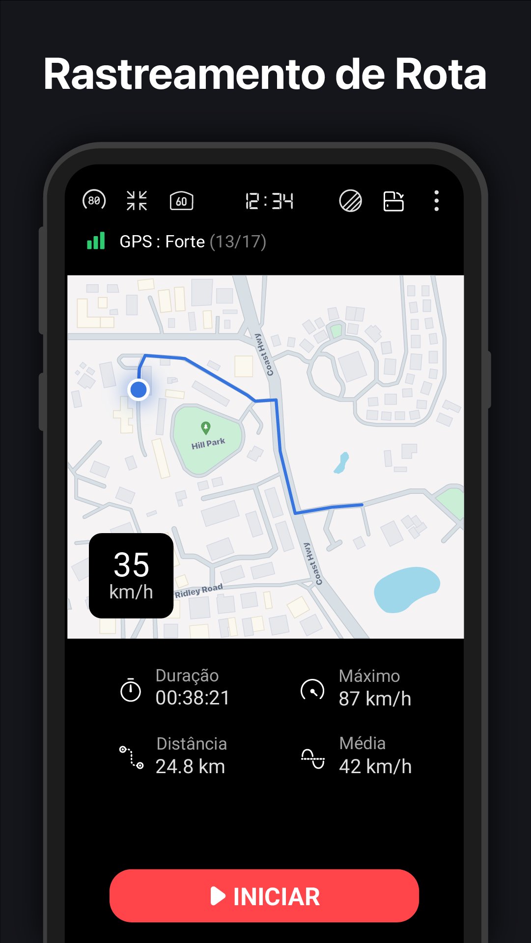Meça velocidade, distância e quilometragem com o velocímetro e hodômetro GPS.