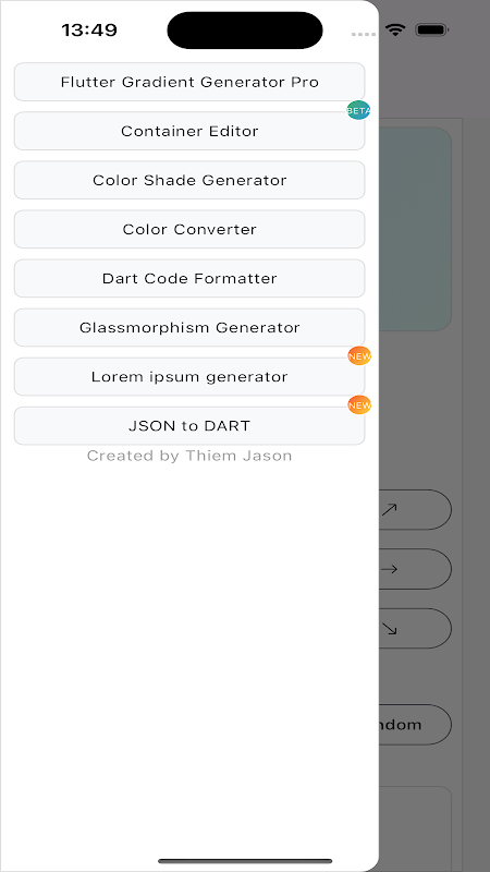- Gerador de gradiente: crie belos gradientes lineares, radiais e de varredura personalizados para Flutter.