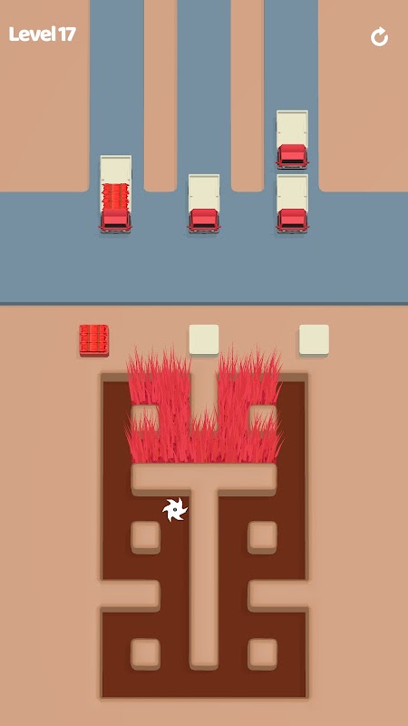Colha grama vermelha, azul e verde e empurre-a para o caminhão da mesma cor para vencer.
