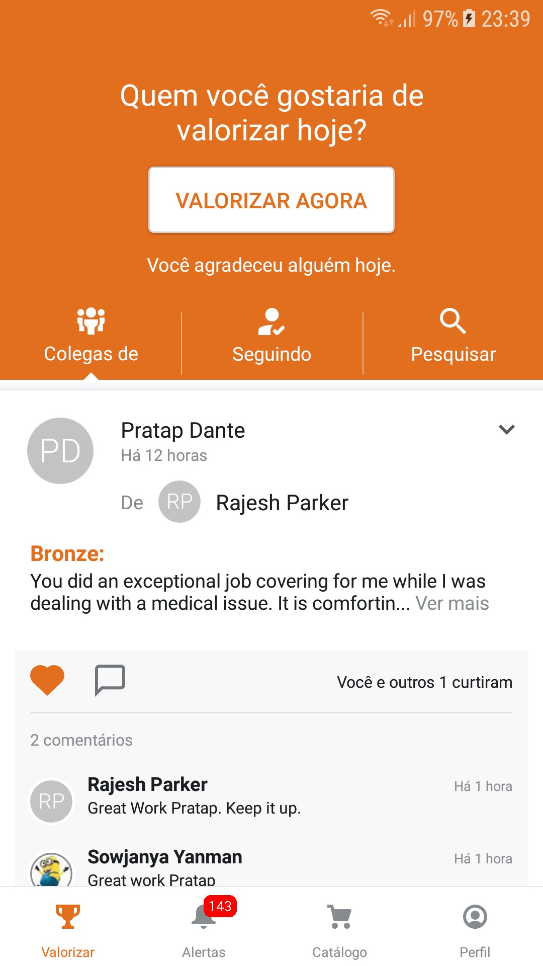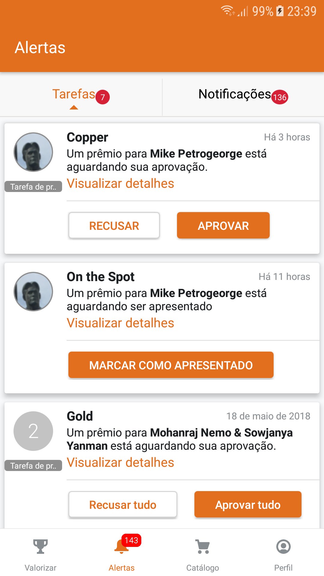 O aplicativo Great Work, de O.C. Tanner, facilita o reconhecimento quando você está em atividade. Basta sincronizar o aplicativo ao programa de desempenho de sua organização para começar. O aplicativo permitirá que os usuários deem eCards, enviem nomeações, aprovem ou recusem nomeações, completem apresentações e encomendem uma recompensa, entre outras coisas.