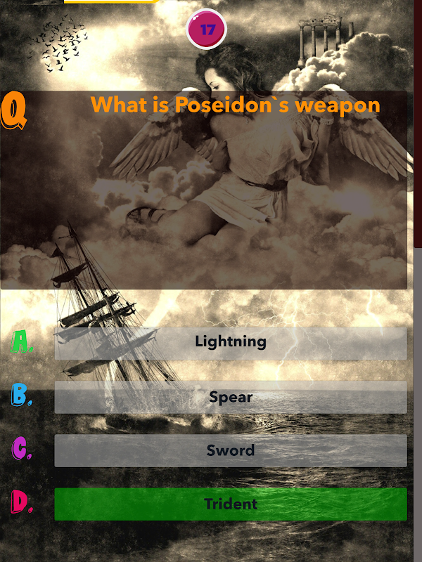 This Greek Mythology game helps user to sharpening their knowledge and senses, help them to prepare for exams or tests which are based on all Aspects of Greece Mythology and helps them to increase their knowledge. This app targets people of all ages, even children could enjoy tests created by this app and could enhance their Greeks gods and goddesses Mythology Knowledge. This app can be used for the preparation of School, Collage and Universities quizzes and also for entry tests. This app contains cool features like coloring buttons green if the answer is correct otherwise colored it red because the answer is wrong. It contains good graphics and less Ads. This app is extremely efficient, it is developed in such a way so that it could run smoothly in any device.