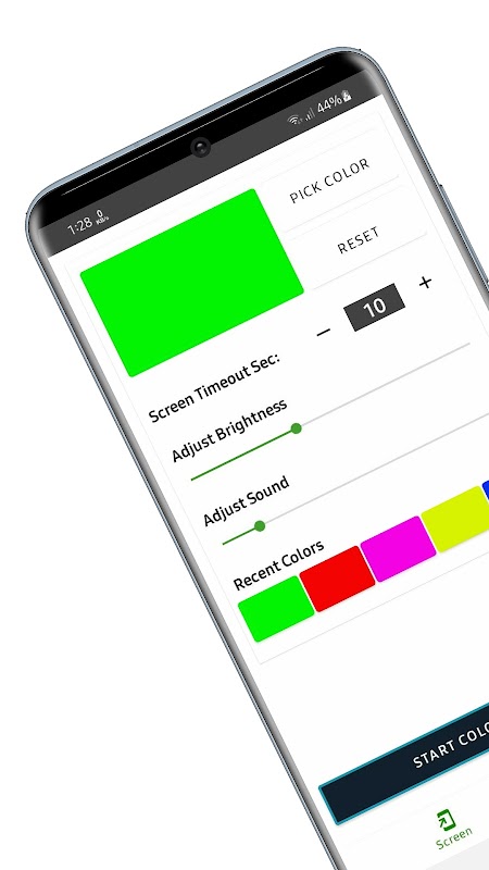 O aplicativo Green Screen é um aplicativo de tela colorida em tela cheia. O aplicativo pode selecionar cor, alterar o brilho, alterar o som do sistema e definir o tempo limite da tela.