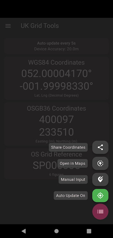 Projetado para topógrafos, engenheiros, entusiastas de atividades ao ar livre, profissionais de GIS e qualquer pessoa que precise de dados precisos de localização no Reino Unido - o aplicativo garante que suas coordenadas estejam com precisão de 1 metro.