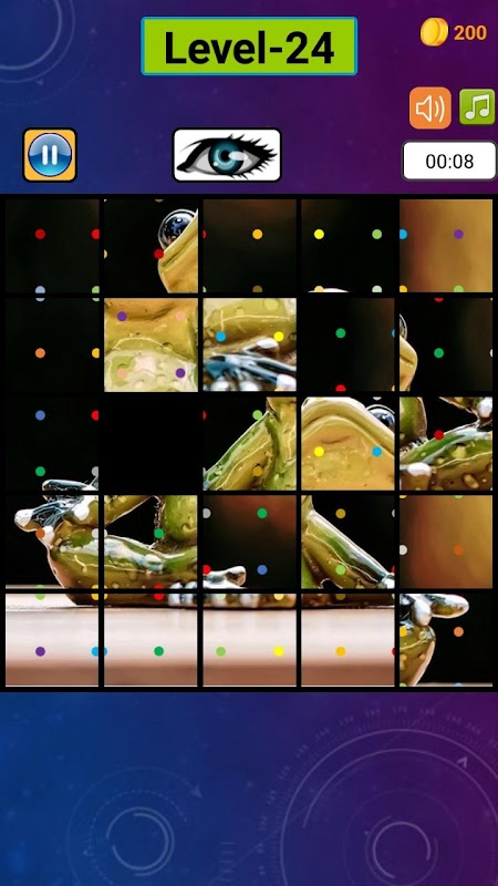 Um jogo de quebra-cabeça da Cell47. Mova o quadrado preto para completar a imagem. Os quadrados ao redor podem ser substituídos pelo quadrado preto, o que será considerado um movimento. Você precisa tocar em um dos quatro quadrados ao redor para substituir as posições. Mova o quadrado preto para converter a imagem em sua forma original. Converta a imagem em sua forma original com o mínimo de toques para pontuar mais. Você também pode criar seu próprio quebra-cabeça personalizado com a imagem e a dificuldade selecionadas.