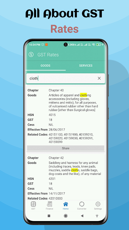 You can also check GST Rates for any Goods and Services very easily on this app.