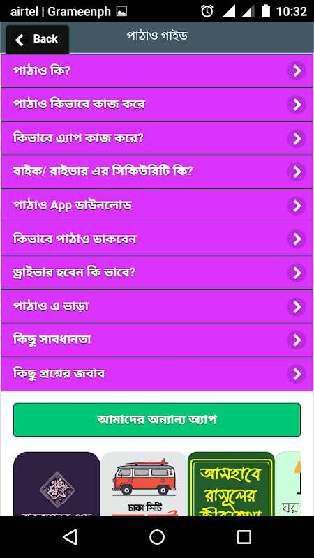 This is an guide app for Pathao users in Dhaka city, Bangladesh. Download free to know Tips and tricks for everyday Pathao ride share. Both Pathao passenger and Pathao driver guide in a single app. How to sign up for Pathao, travel safety, promo code and gift code etc. Taxi and on demand car services and ride share services are getting very popular. Because, besides Pathao app other apps are also getting popular. Pathao is a local company operating in Bangladesh. they have two app: pathao drive and pathao ride. Pathao service use smartphones location (GPS) service to match drivers and riders. By installing our Pathao user guide you can learn how to download Pathao app BD, how to sign up, calling an motorcycle, how to apply promo code or gift code everything you need to know to travel in Dhaka city without Dhaka map offline. So, this app is a complete guide for Pathao in dhaka for both pathao rider app and pathao drive app. As a driver you'll get to know how to sign up as a Pathao driver, finding a trip, how to make cash, payment method etc. So, this pathau guide app will guide you to how to earn money being Pathao biker. As people are less likely to use rent a car taxi or other now a days. So download this app to get pathao drive update always!