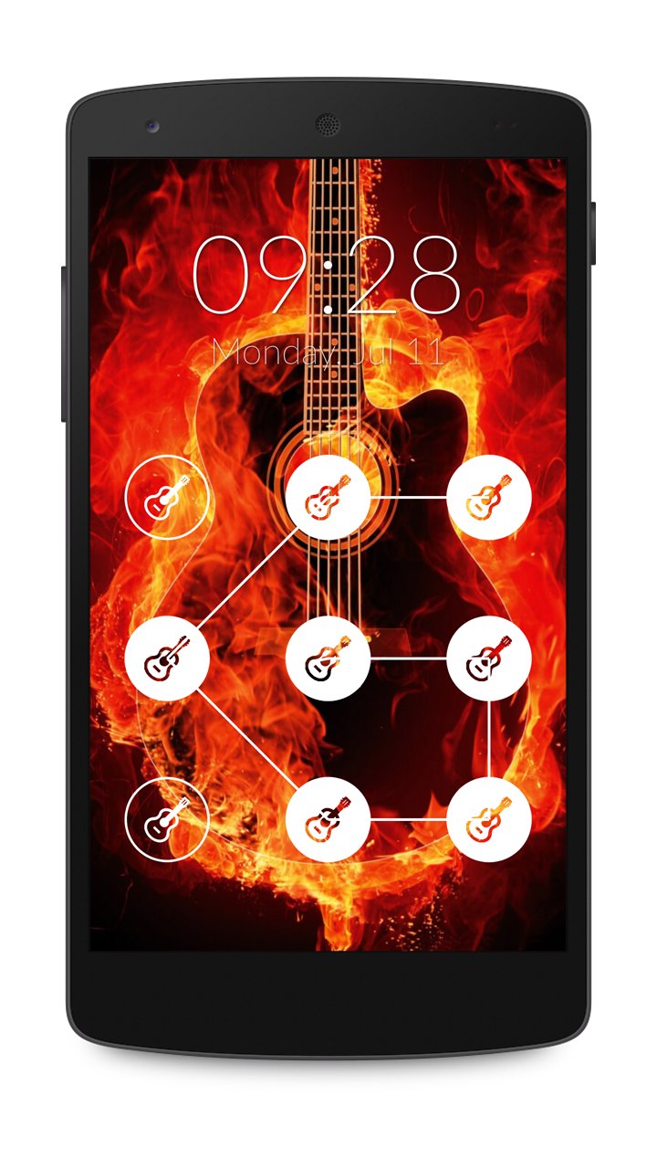 Download latest guitar pattern lock screen! Sing the song with Guitar. Play and feel music of love with guitar locker. There are various type of guitar in this lock.
