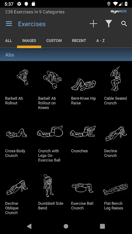 • Você pode fazer cada exercício um após o outro, mas também pode pular exercícios, executá-los em uma ordem diferente ou fazer exercícios extras. Você também pode fazer quantos sets quiser ou conforme a situação da academia. O GymACE não o restringe de forma alguma.