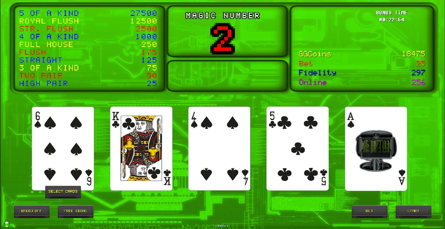 O Hacker Magic Video Poker é uma simulação de alta fidelidade do videopoker mais jogado de 1990 a 2004.