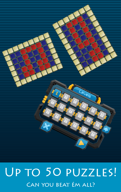 Up to 50 puzzles to solve, with a progressive curve of difficulty, that would test your skills !