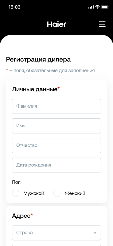 Aplicativo móvel para registrar números de série pelos usuários do programa de afiliados HaierProff.