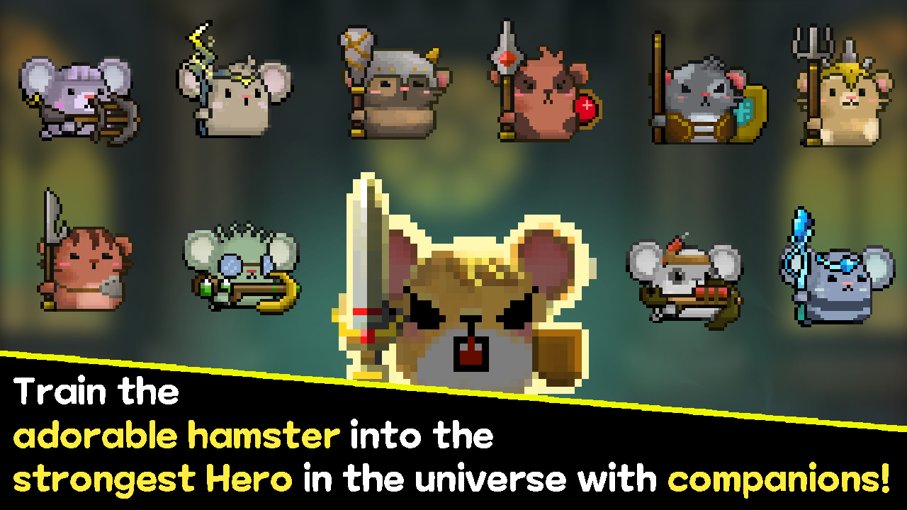 Pegue o hamster e treine-o para se tornar o Herói mais forte do universo. Liberte a vila dos Monstros que ameaçam destruí-la.