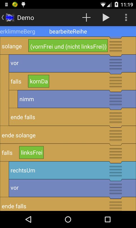 Hamstroid não deve substituir, mas complementar o simulador de hamster. Pretende-se para situações onde você tem um pouco de tempo e vontade de empregar aprender a programar com, mas um computador ou laptop não está disponível, por exemplo. No ônibus ou trem ou durante uma pausa no meio. Então da próxima vez se envolver em tais situações para smartphone e jogar ou "rumdaddeln" quer manter talvez apenas por um momento: Na verdade, eu poderia fazer algo mais significativo e um pouco de "entesouramento" com Hamstroid também.