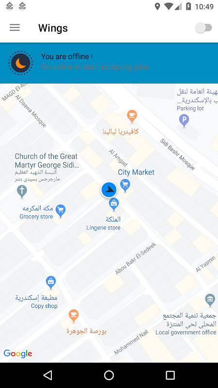 Aplicativo do motorista do serviço de entrega de entrega