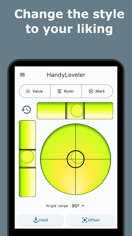 Você pode verificar o nível com as bolhas com as quais está acostumado e pode verificar os ângulos com os valores numéricos exclusivos dos smartphones.