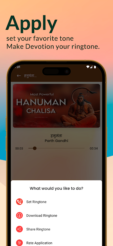 Deixe seu telefone refletir sua devoção ao Senhor Hanuman com sons divinos que inspiram força, fé e positividade.