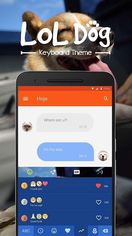 This Happy Dog Keyboard Theme uses Facemoji Keyboard Facemoji Keyboard + GIFS. Please click the link to have it installed first.