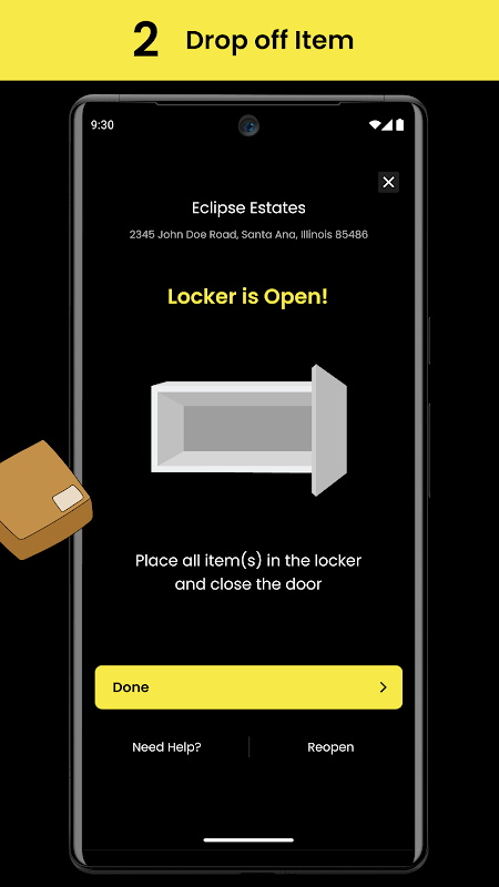 Com o seu Harbor Marketplace Locker selecionado localizado, basta chegar e armazenar seu item. O aplicativo Harbor Pilot garante um processo de entrega contínuo. Quer se trate de vendas de produtos, devoluções ou qualquer troca, nossos armários são projetados para atender às suas necessidades, proporcionando um espaço seguro para seus itens até que estejam prontos para serem retirados.