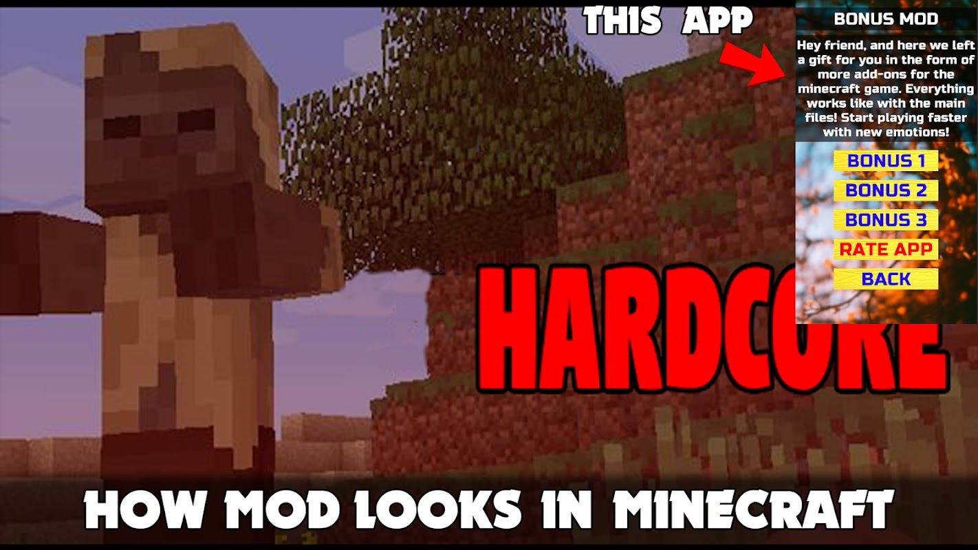 🤩 Hardcore Mod para Minecraft PE 🤩 este é um aplicativo inicializador que ajuda você a importar mods para um jogo chamado MCPE!