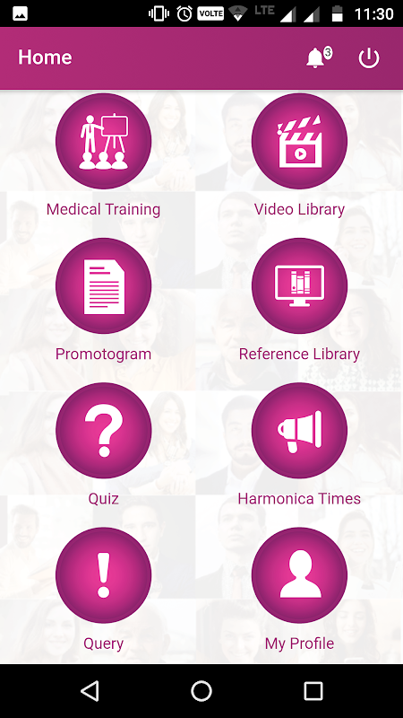 2.In this application their are various fields present such as Medical Training, Video Library, Promotogram, Reference Library, Quiz, Harmonica Times, Query, My Profile etc.