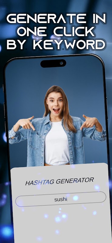 Resultados instantâneos: abra o aplicativo, digite uma palavra-chave ou cole sua legenda, toque em gerar, copie e publique.