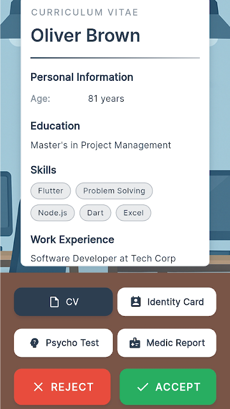 Assuma o papel de um profissional de RH! Analise currículos, verifique documentos de identidade e muito mais para decidir quem merece a vaga.