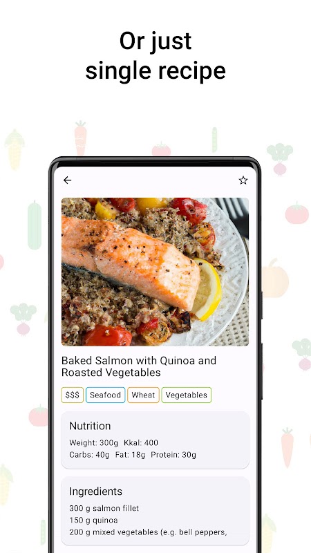 Impulsionado pelos algoritmos sofisticados do ChatGPT, o "Menu Saudável" leva em consideração suas informações, como idade, gênero, peso, altura, nível de atividade e requisitos alimentares para criar menus personalizados para uma semana. Cada menu é cuidadosamente elaborado para garantir uma nutrição ideal e uma dieta bem equilibrada, especialmente adaptada para você.