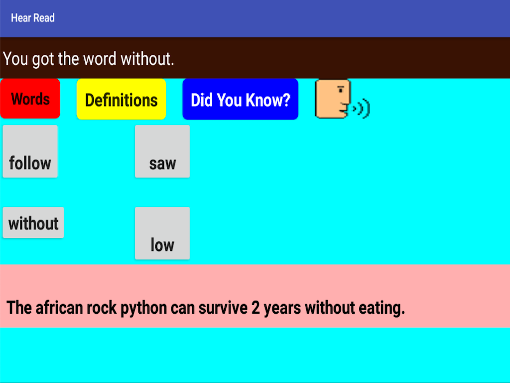 Practice your Reading and Spelling skills by tapping the word you will hear in a sentence.